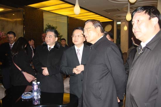 董事長孔令發(左一)、臺企聯副會長陳柏光(左二)、三三會長、原海基會董事長江丙坤(右二)淮南市委書記方西屏(右一)