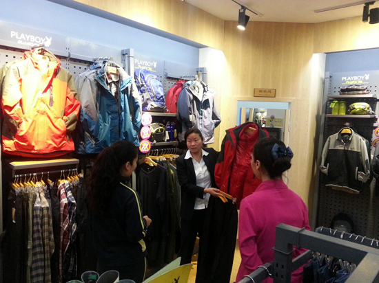 四樓商場劉紅經(jīng)理現(xiàn)場指導(dǎo)營業(yè)員服裝銷售搭配
