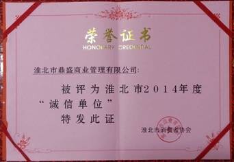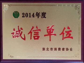 年經營中,因堅持誠實守信、誠信經營,被淮北市消費者協會評為淮北市
