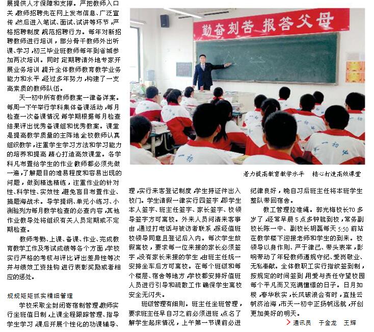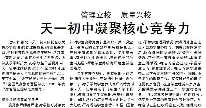 淮北晨刊連續(xù)報(bào)導(dǎo):天一初中凝聚核心競爭力